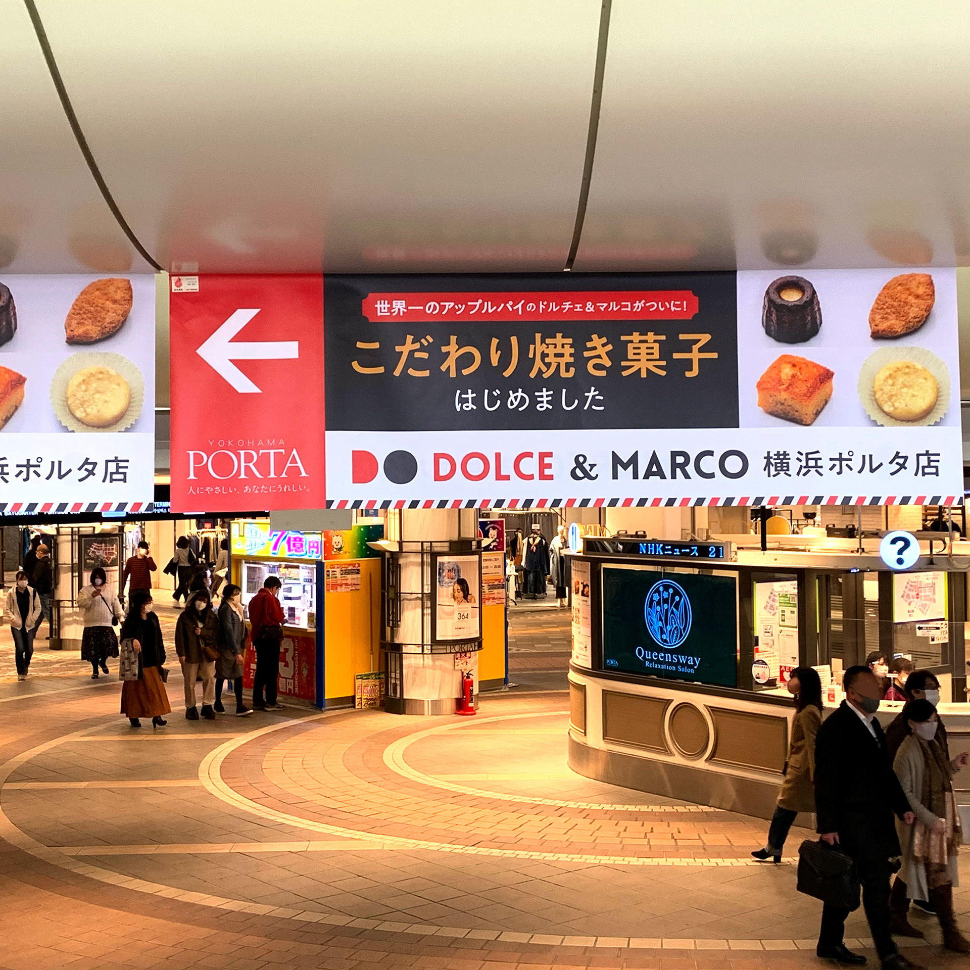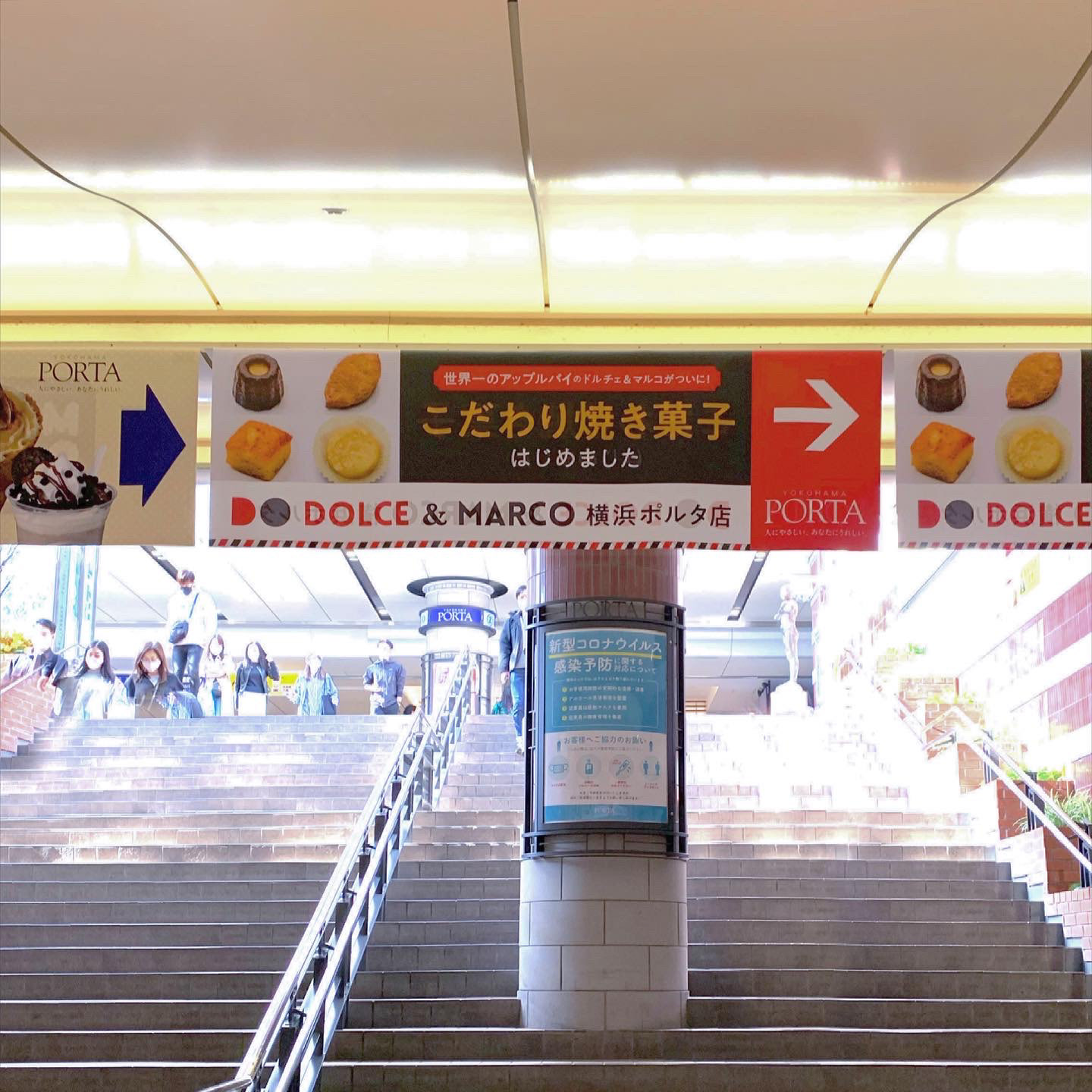 店頭POPやサイネージ、また横浜駅東口のそごうへ向かう階段にある吊り下げ広告にて各種展開中です!